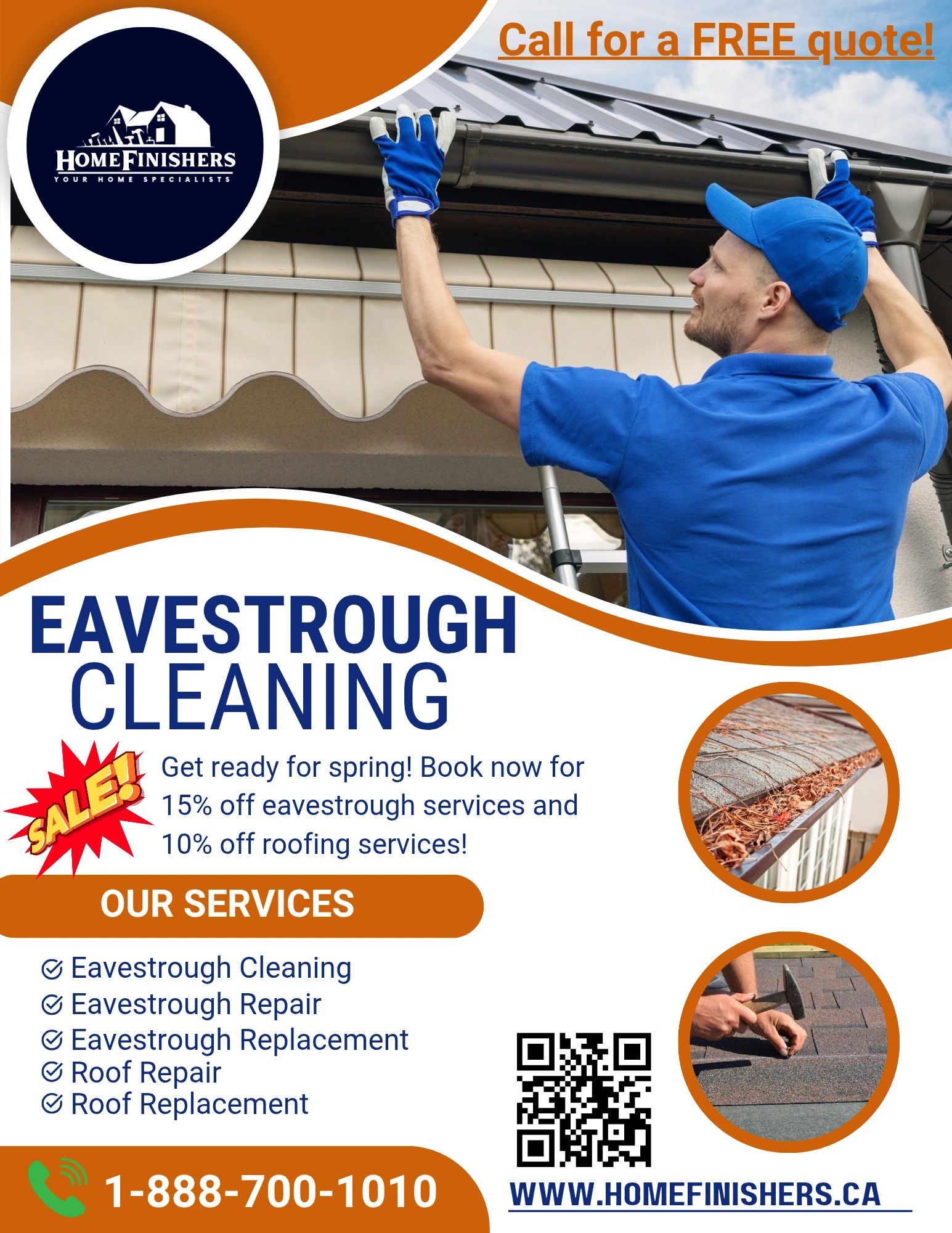 on spring EAVESTROUGH and ROOFING projects. CALL or contact us today for priority scheduling.